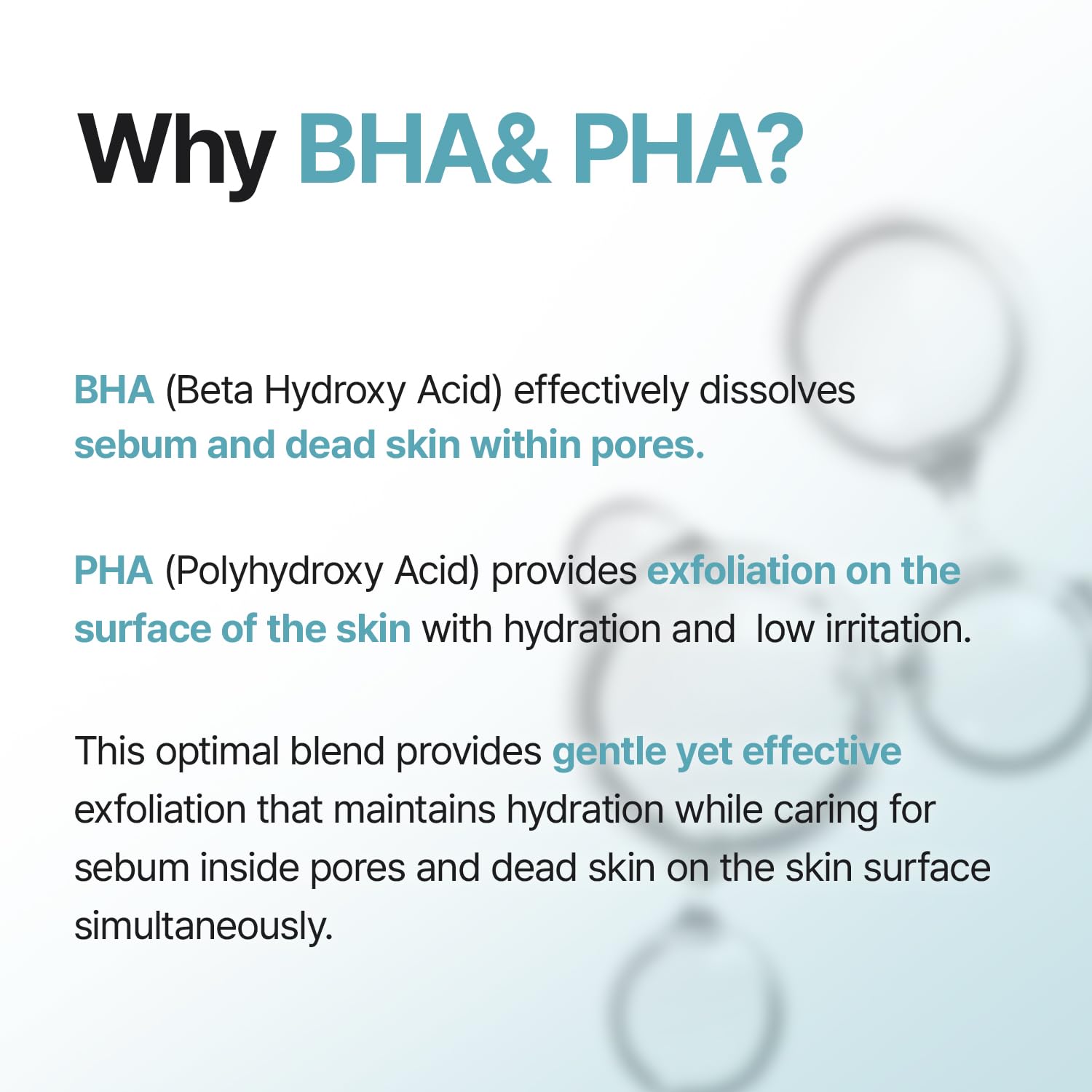 - 💧 PHA + BHA Water Peel Formula PHA (Gluconolactone) gently smooths surface texture while BHA (Salicylic Acid) helps refine pores and clear buildup—safe for everyday routines.